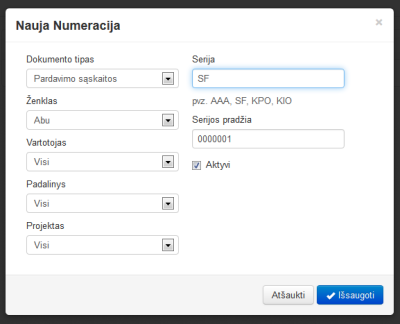 Vartotojas, Padalinys, Projektas - galima priskirti atskirą numeraciją pagal vartotoją, padalinį ar projektą.
