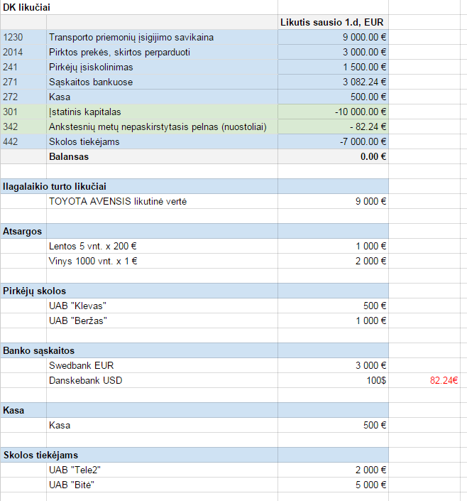 Jei balansuojanti sąskaita lygi 0, tai belieka patikrinti įmonės balansą ir pirkėjų, tiekėjų, banko sąskaitų likučių atitikimą pradiniams duomenims.