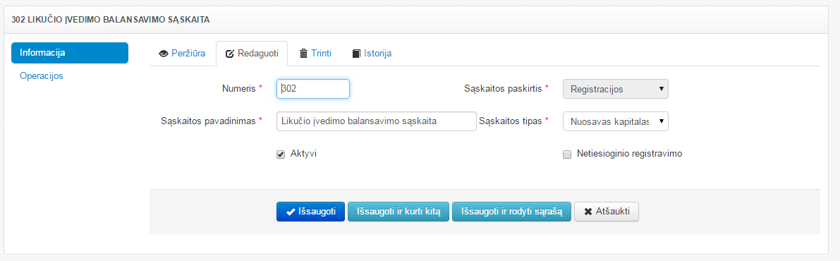 Po likučių užregistravimo ir patikrinimo, šią sąskaitą galima padaryti neaktyvią.