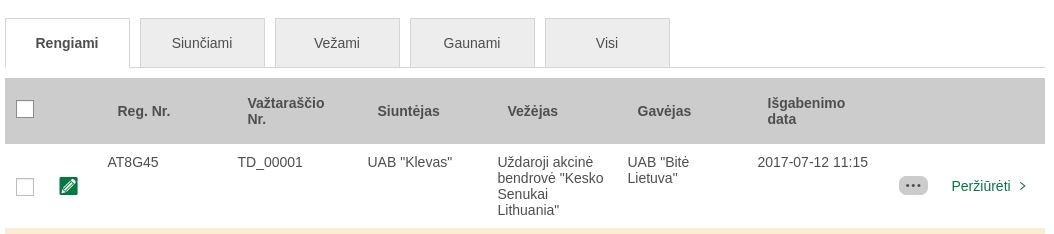 Vežėjas - pasirenkama iš Tiekėjų sąrašo