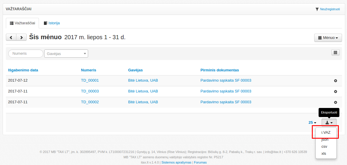 Važtaraščių pateikimas į i.VAZ eskportuojant XML failą