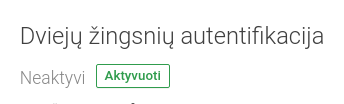 Aktyvuoti dviejų žingsnių autentifikaciją galima vartotojo nustatymuose