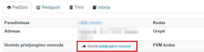 Pirkėjo/tiekėjo prisijungimo nuorodas taip pat galite rasti atsidarius pirkėjo/tiekėjo kortelę:
