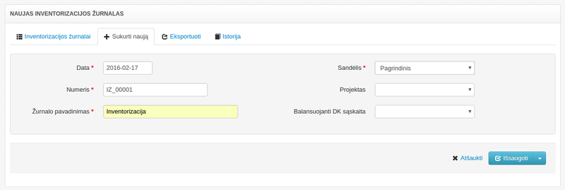 Inventorizacijos žurnalo sukūrimas