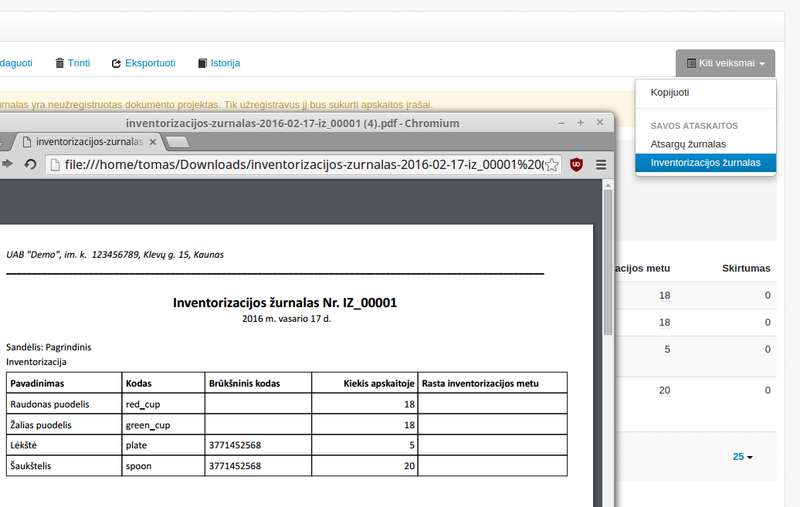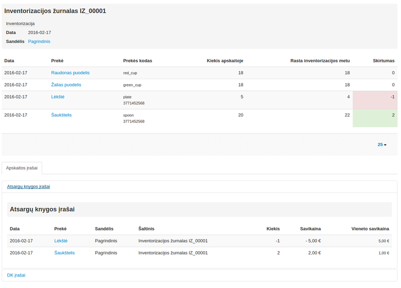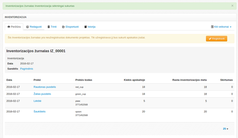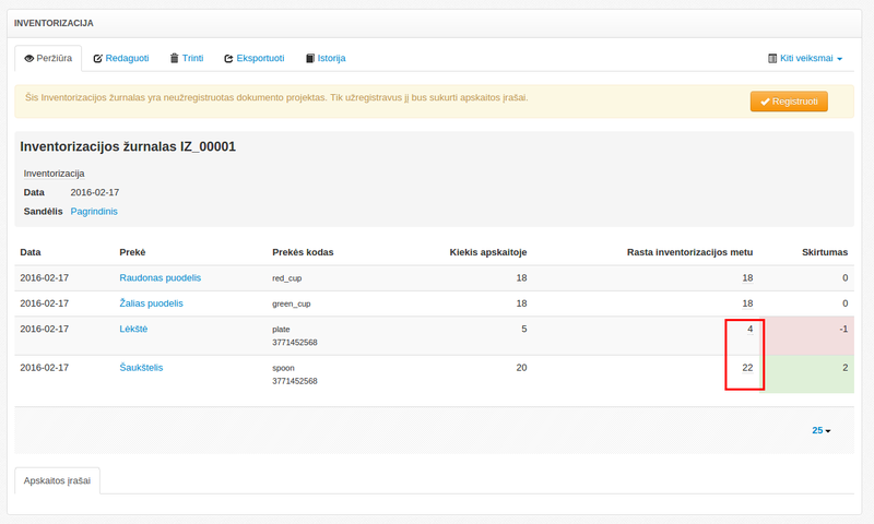 Žurnalas užregistruojamas ir inventorizacijos rezultatai patenka į apskaitą.