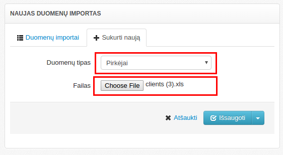 Jei faile nurodysite susijusio duomens pavadinimą (pvz. pirkėjo grupės), tai importo metu sistema priskirs tą grupę arba sukurs naują, jei tokia dar neegzistuoja.