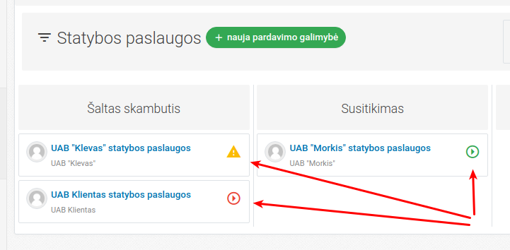 Geltona - pardavimo galimybė neturi neįvykdytų suplanuotų užduočių