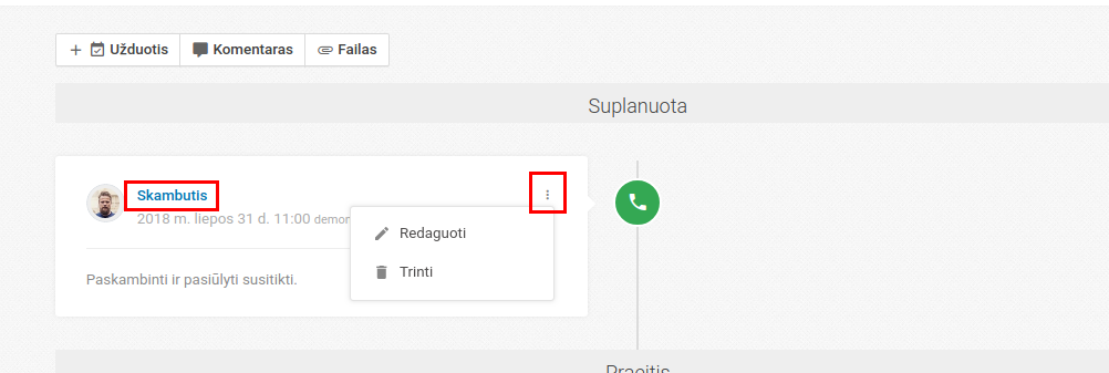 Jei suplanuotų užduočių jau eama, galima spausti ant jų pavadinimo ir pažymėti kaip įvykdytas arba paredaguoti.